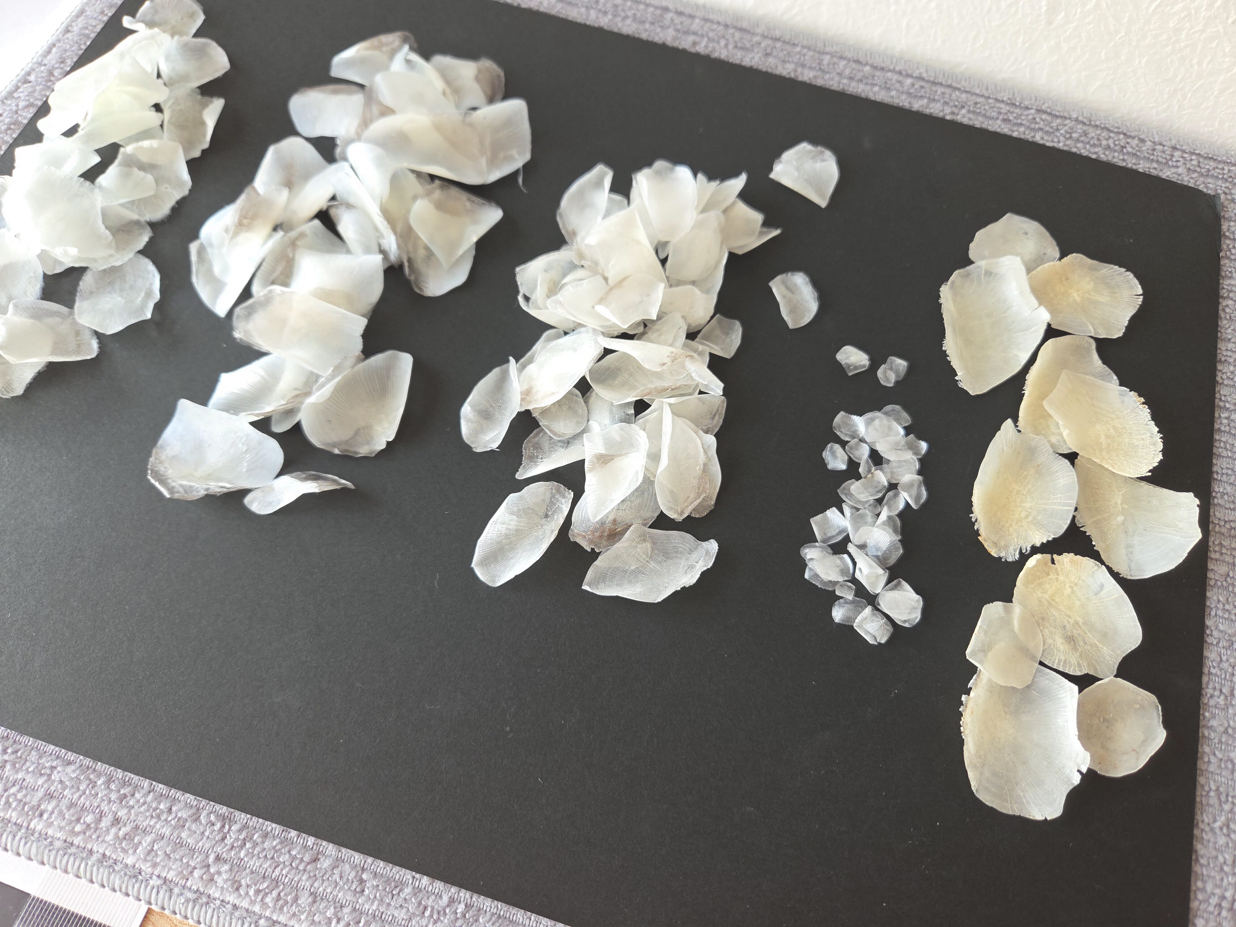 そこで思いついたのが、魚の鱗。フィッシュマーケットの方に頼んで鱗を大量に購入し、日本に持ち帰りました。