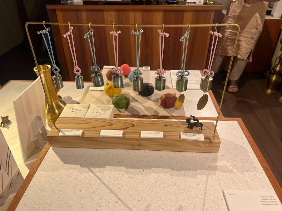 伝統的な仏具「おりん」を現代の生活に馴染むサイズやデザインにアレンジしたアイテム。響きがひとつひとつ異なり、癒しの音の余韻に包まれる、まさに心に響くアイテムでした。