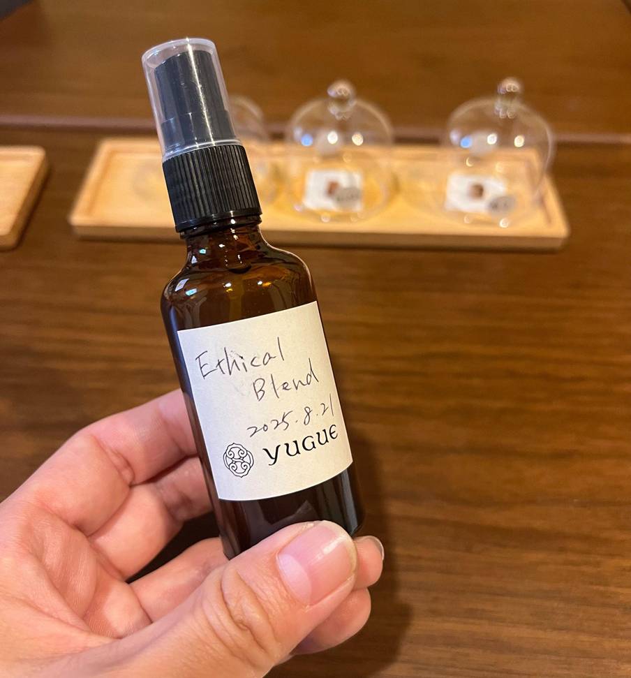 ブレンドする香りを選ぶ作業がとても楽しい体験でした。自分だけのオリジナルスプレーは特別感があり、市販品とは一味違った満足感があります。