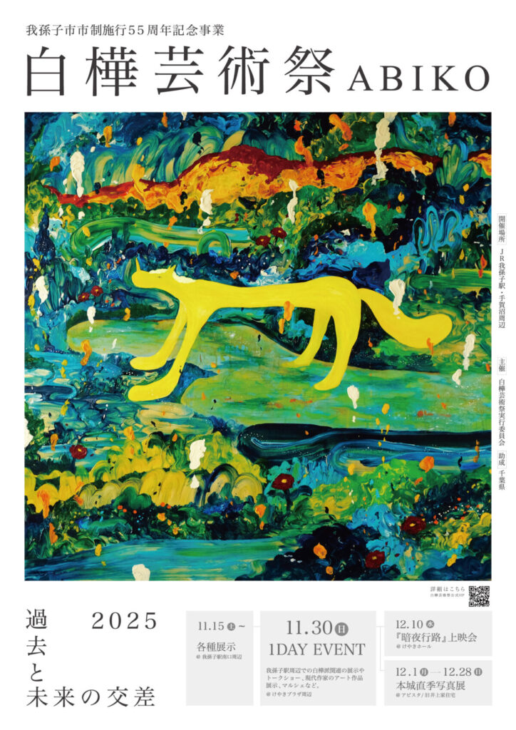 志賀直哉や武者小路実篤ら白樺派の文人・芸術家たちのゆかりの地である我孫子市で開催される、産学官民連携の芸術祭。
