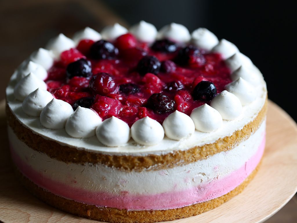 卵・乳製品・小麦・白砂糖不使用のヴィーガン&グルテンフリーケーキ。4種のベリーを贅沢に使用した華やかなデザインで、軽やかなムースのような口どけが魅力。小さな子どもにも食べやすい仕上がりです。