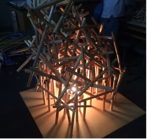 ヨシ原の役割や環境について学んだあと、実際にヨシを使ってオリジナルの灯りを制作。